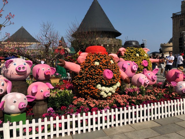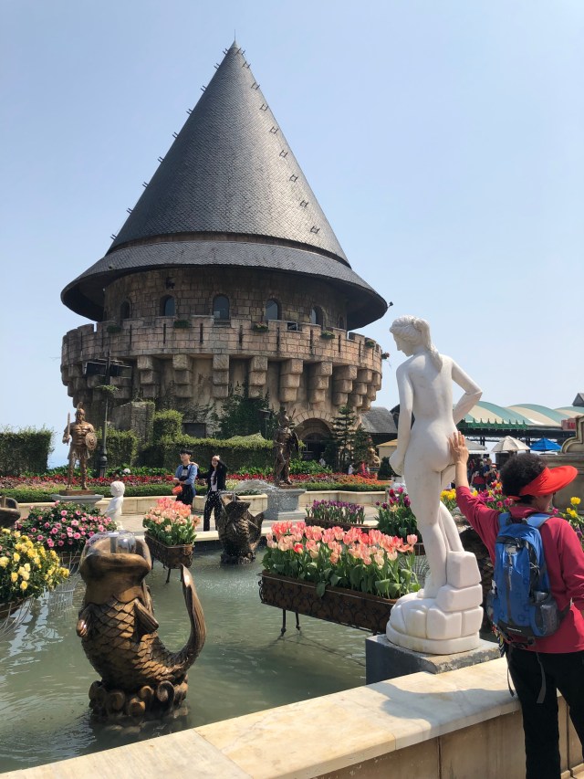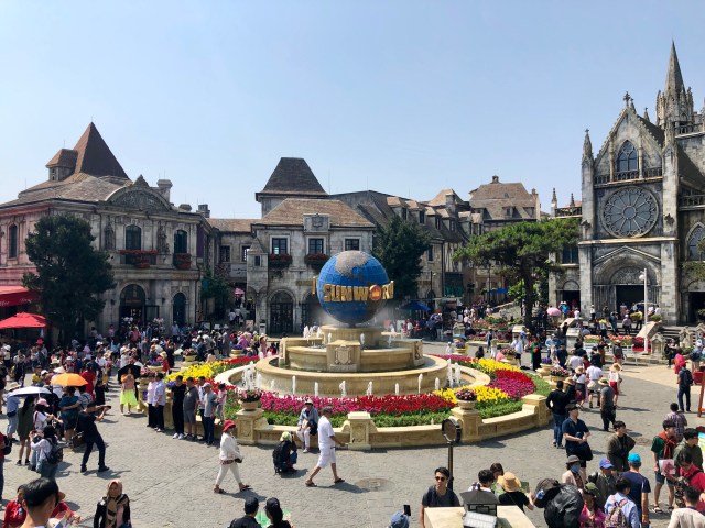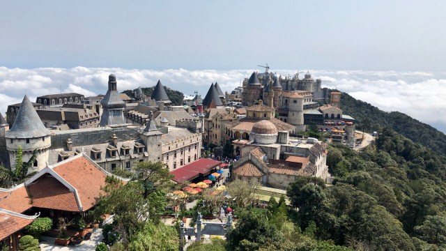 Little did I know, Ba Na Hills / Sunworld, the mountaintop park that the Golden Bridge is part of, has the longest continuous cable car ride in the world, a winery, meditation garden, pagoda, amusement park, arcade, outdoor alpine slide ride, performing arts shows, a mini European village, and some of the best mountain views I’ve seen yet on this trip.