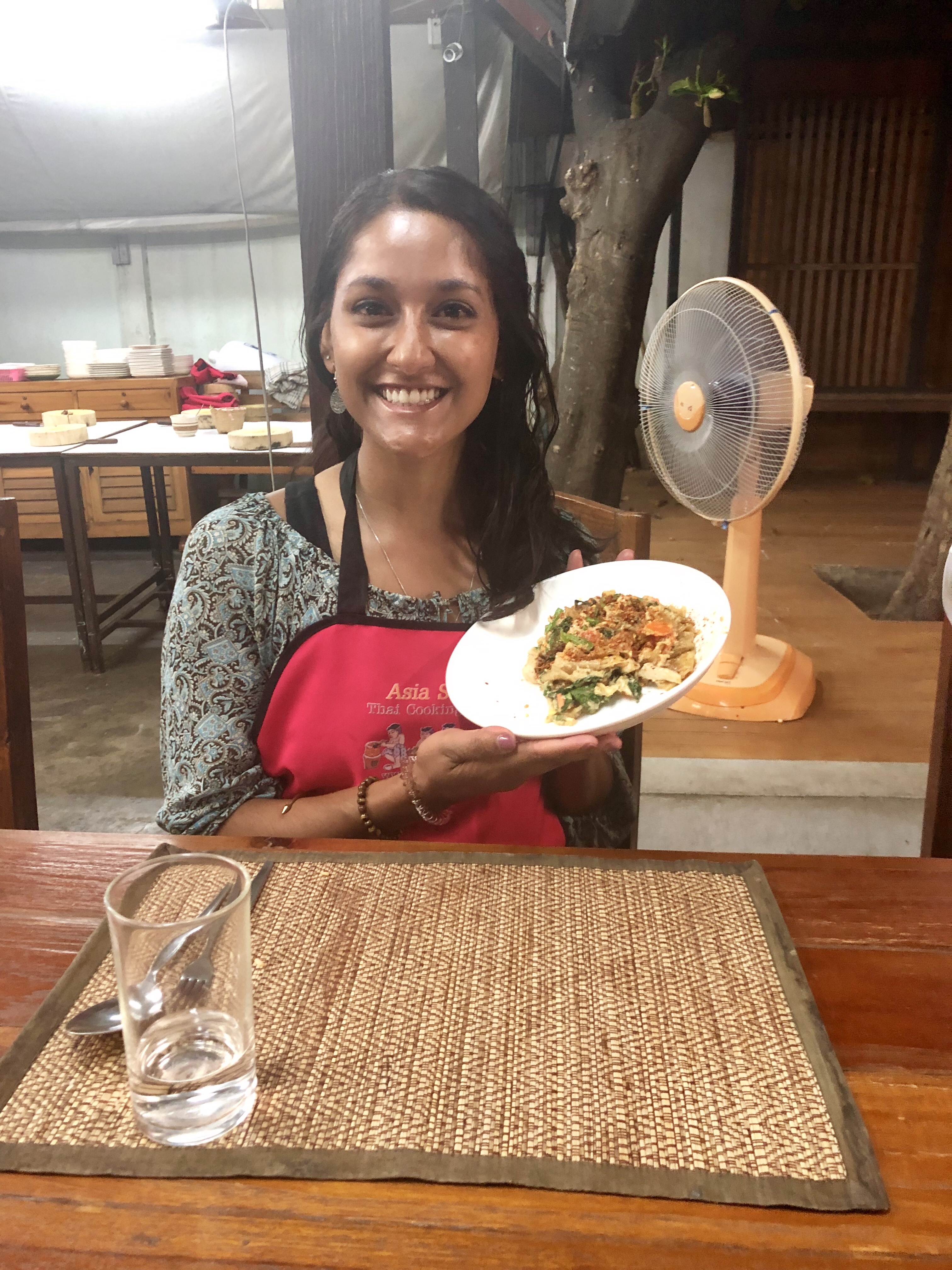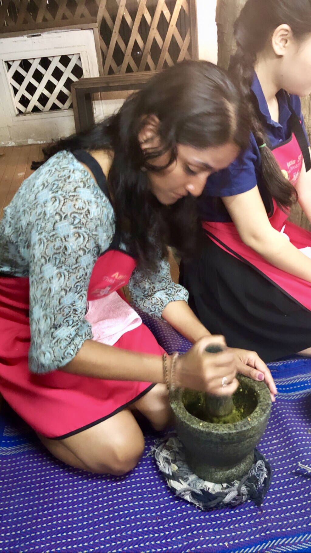 The class was really fun and you learned a lot about the basics of Thai cooking, such as the different flavor groups necessary for each dish and the order in which you need to add ingredients. My favorite part was making the green curry because we were making our own curry paste from scratch. We had to grind the fresh chilis in a mortar and pestle until our teacher deemed our curry paste perfect. After each course, we sat down to enjoy our hard work while making new friends.