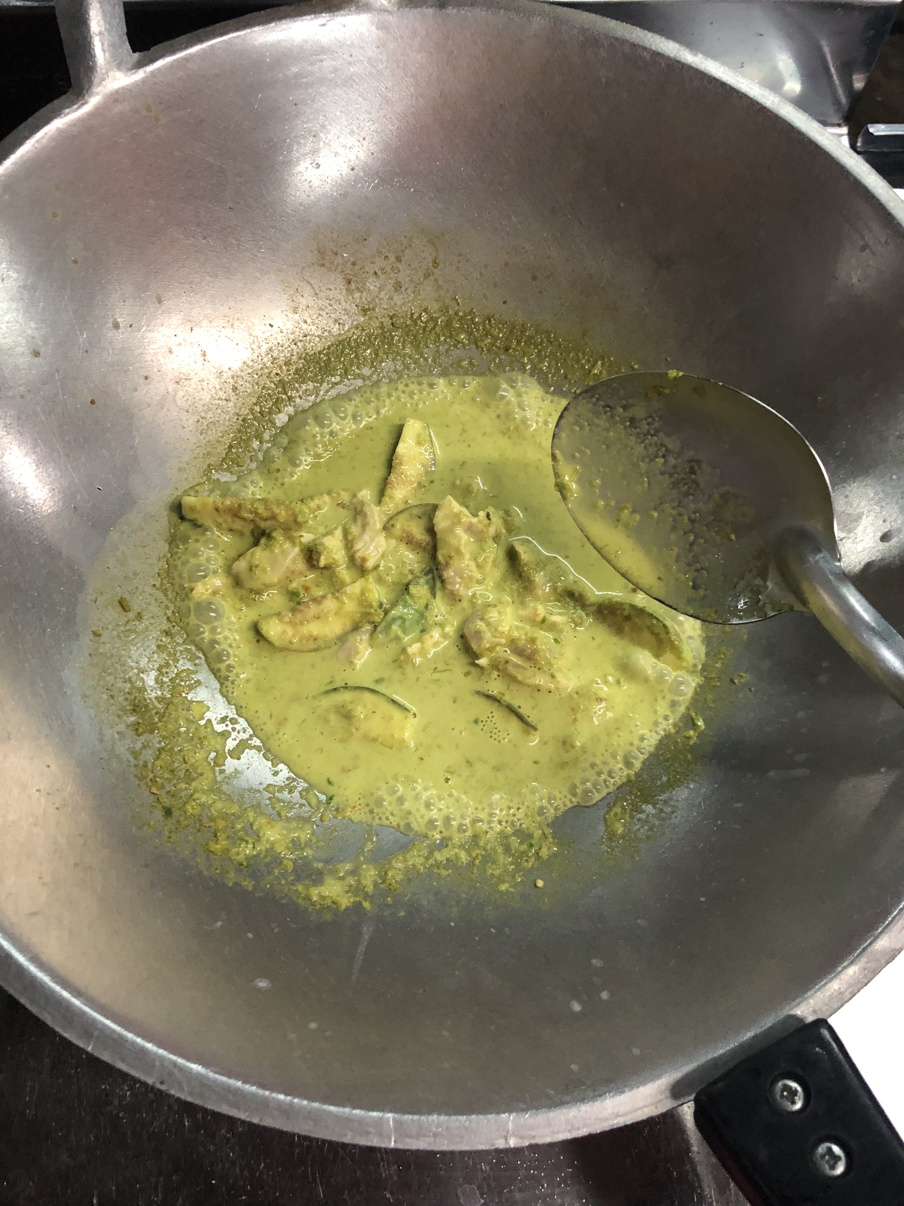 I was making: Pad See Uw, Spring Rolls, Tom Sab, and green curry paste and green curry.