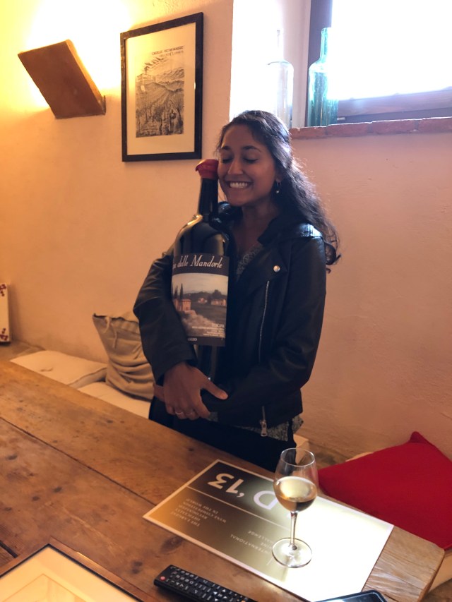 A trip to Italy without wine tasting is like a trip to Japan without eating sushi. While staying in the Florentine hills, we had to visit one of the many vineyards surrounding us at every angle. We chose Castello Vicchiomaggio — a premium wine and olive oil producing estate. The castle itself was breathtaking when the sunlight broke through the clouds. On the tour, we learned about the different types of grapes grown and monitored on the vineyard and what makes a wine a “Chianti Classico”. A Chianti Classico is a blend of 80% Sangiovese and 20% of another type of wine. These wines must have the black rooster seal to prove authenticity and there is a special committee that oversees the authentication and validation of each wine that leaves an estate.