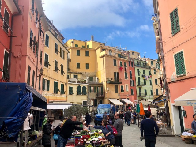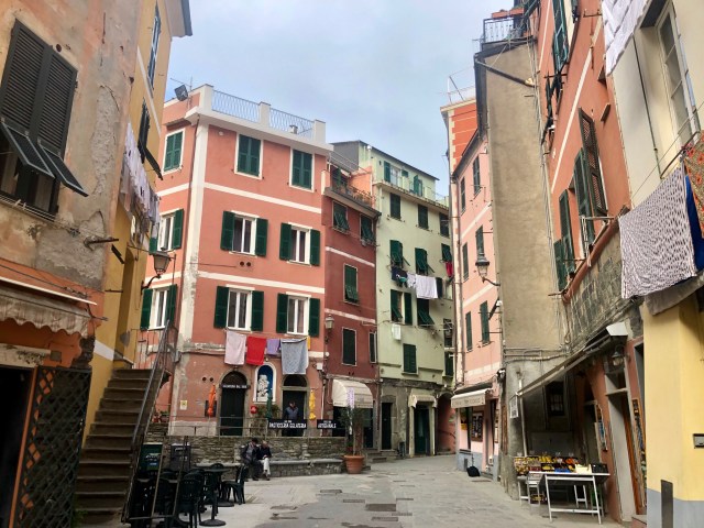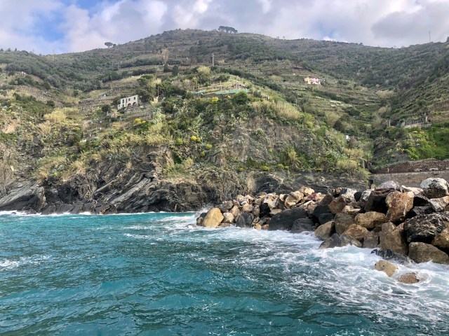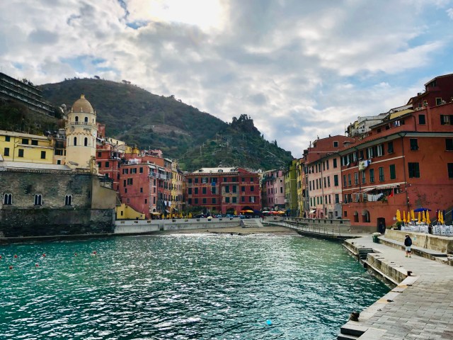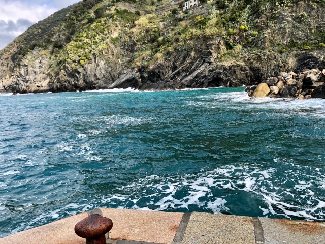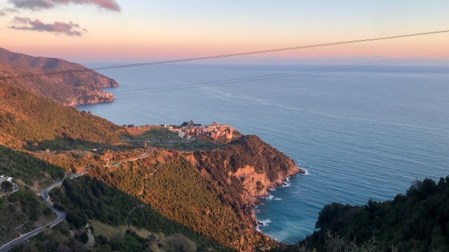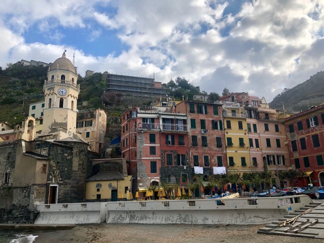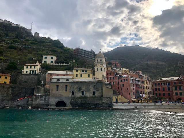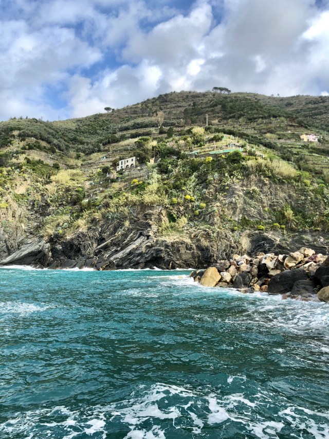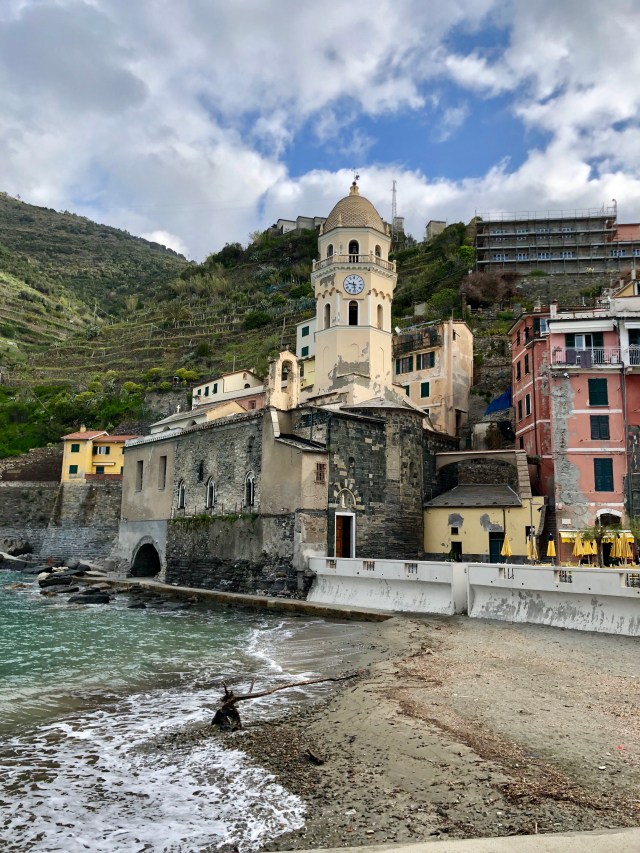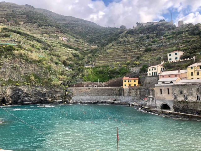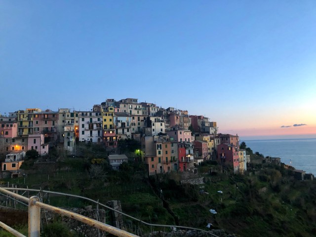 We had the most beautiful view of the towns, mountains, and coast line below our balcony. To actually get to the towns, we could only bring our car to the main towns at night time but still had to park on the outskirts of the town center. Since we were there before Easter, the start of high season, it was quite windy and cold and many places closed quite early. We managed to find one cliffside restaurant in Corniglia that stayed open until 10 pm, so we had a quick prosciutto sandwich at dusk overlooking the water.